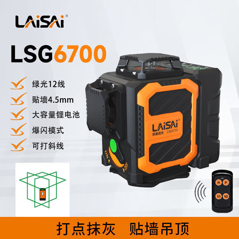 Laser Level Instrument 12 Lines Lsg6700 High-Precision Strong Light Thin Line Green Light Ceiling/Wall-Mounted Level Instrument