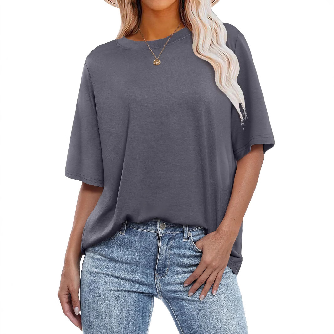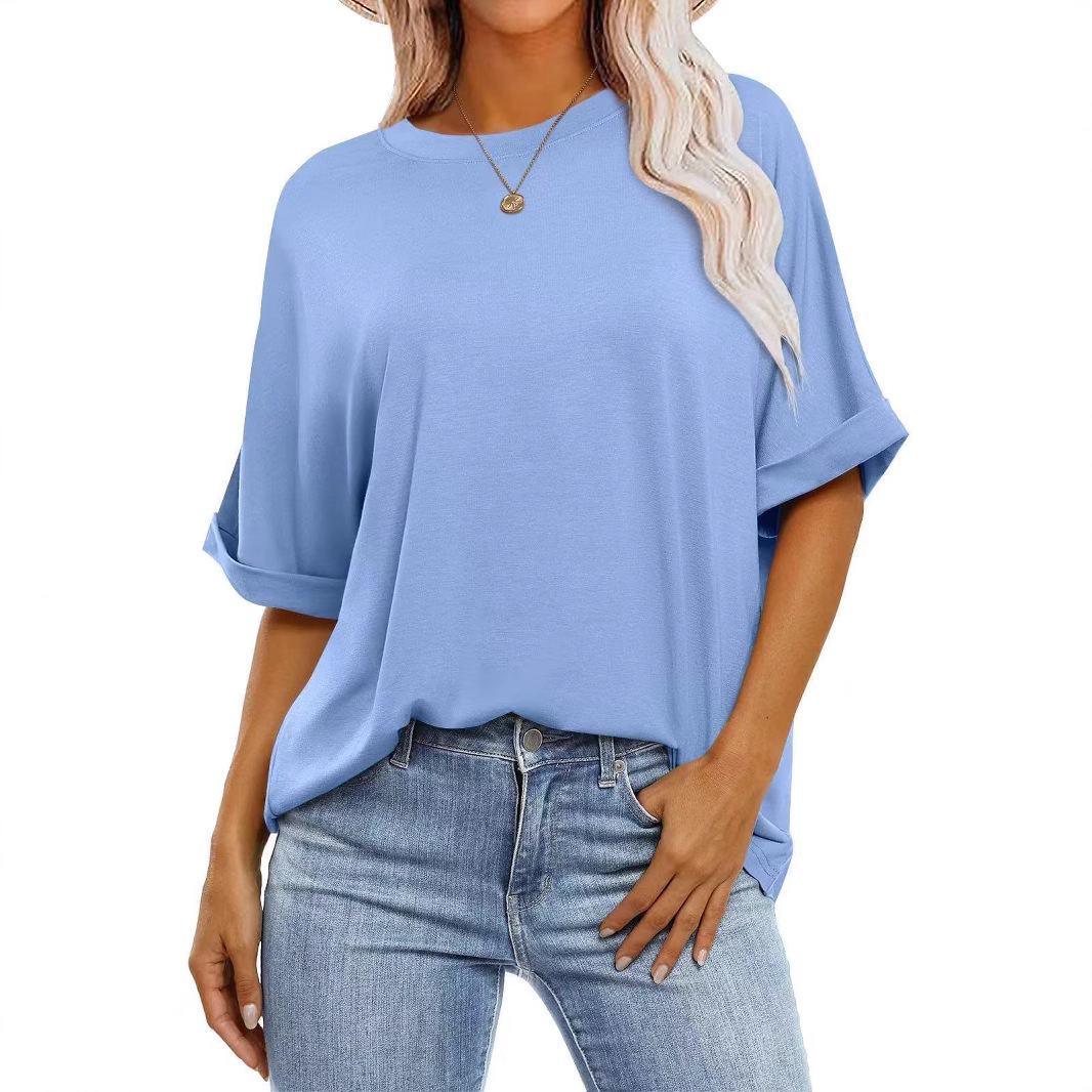 2025 summer new Amazon Europe and the United States new sleeved oversized loose round neck T-shirt cross-border foreign trade women's T-shirt
