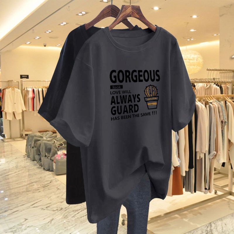 100 Cotton Round Neck Loose Casual T-Shirt Women's Summer New Arrival Ras plus size chubby girl Distinctive Printed Base Top