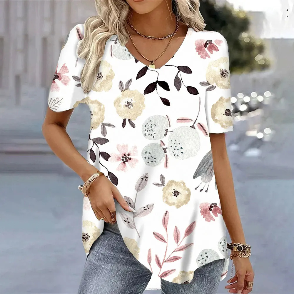 2024 New Women Loose Short-sleeved T-shirt V-neck Fashion Summer Casual T-shirt Top Women Super plus size