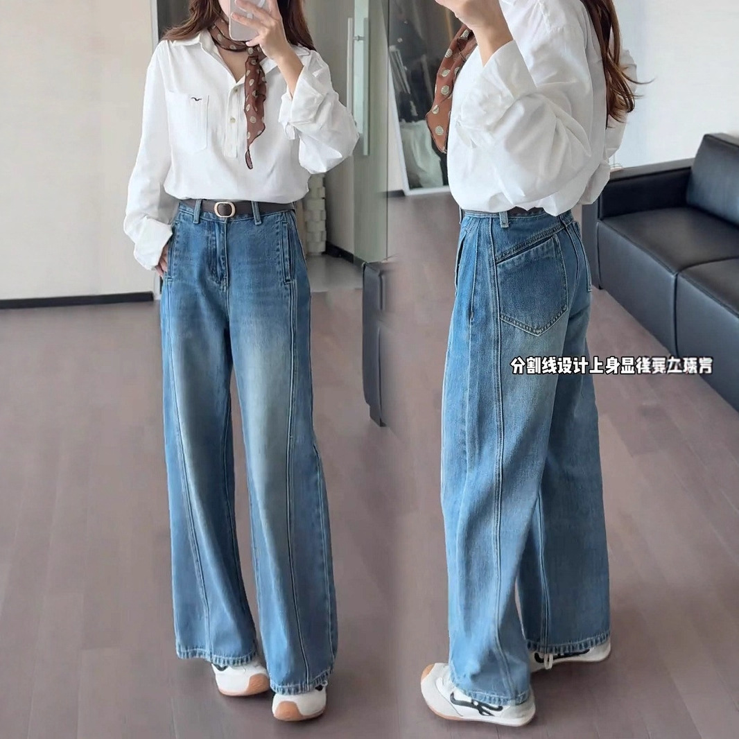 Casual Straight-Leg 2025 Retro Jeans for Women, Loose Fit, Spring and Autumn, Long Drape, High-Waisted, Fashionable New Wide-Leg Pants