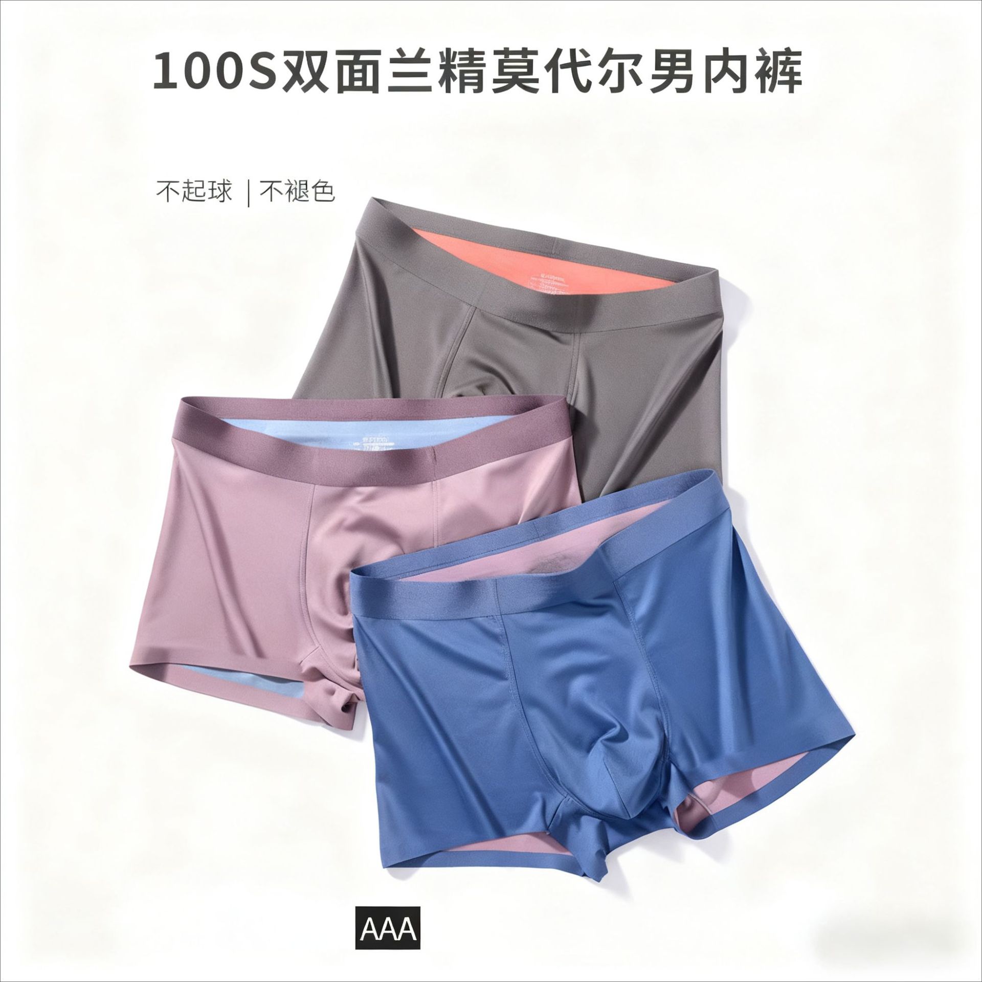 100 double-sided Lanjing Modal men's underwear naked mulberry silk antibacterial crotch seamless boxer pants men's wholesale