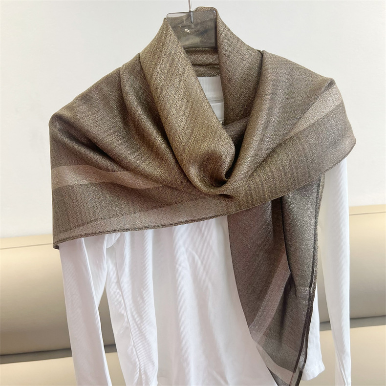Super beautiful silk scarf! Cross-border silk-like golden silk gradient Muslim silk scarf sunscreen shawl 90CM square scarf for women
