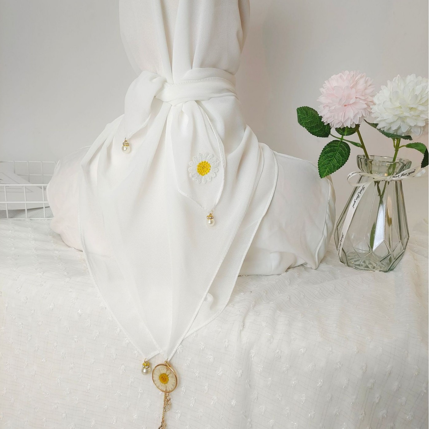 New Solid Color Chiffon Square Scarf Hui Scarf ins Style Daisy Dried Flower Hui Scarf hijab