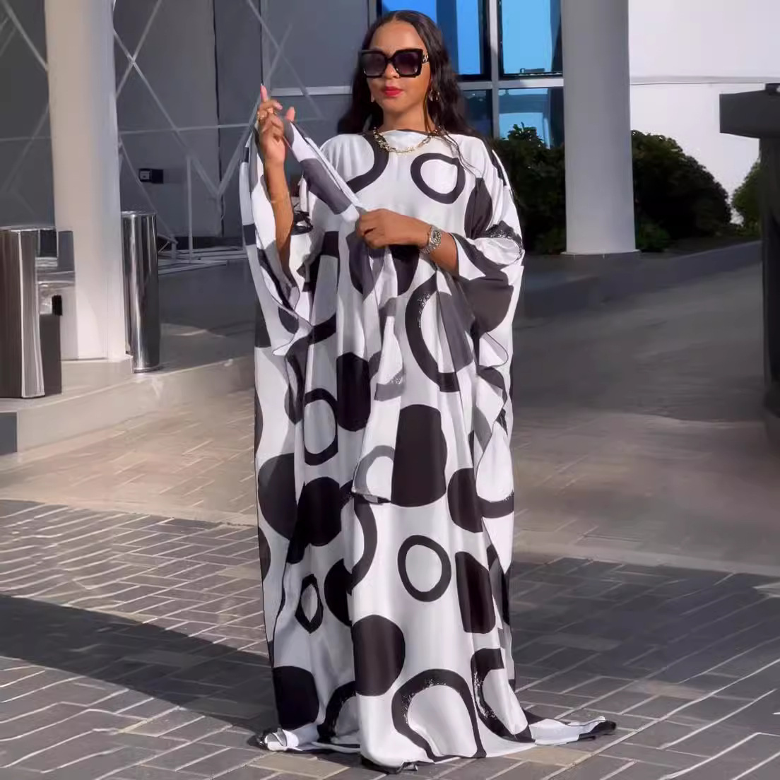 Cross-border Foreign Trade Muslim Women's Bat Sleeve Loose plus size Gown African AliExpress Print Color Contrast dress