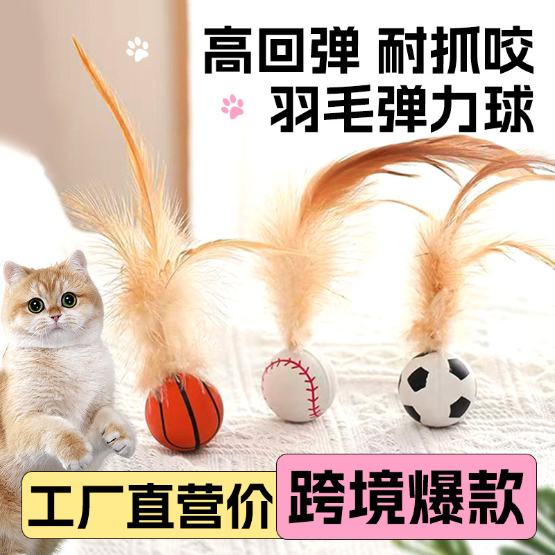 Cross-border New Internet Celebrity Chicken Feather Rubber Balls Feather Throwing Cat Toys Self-hi Pet Toys