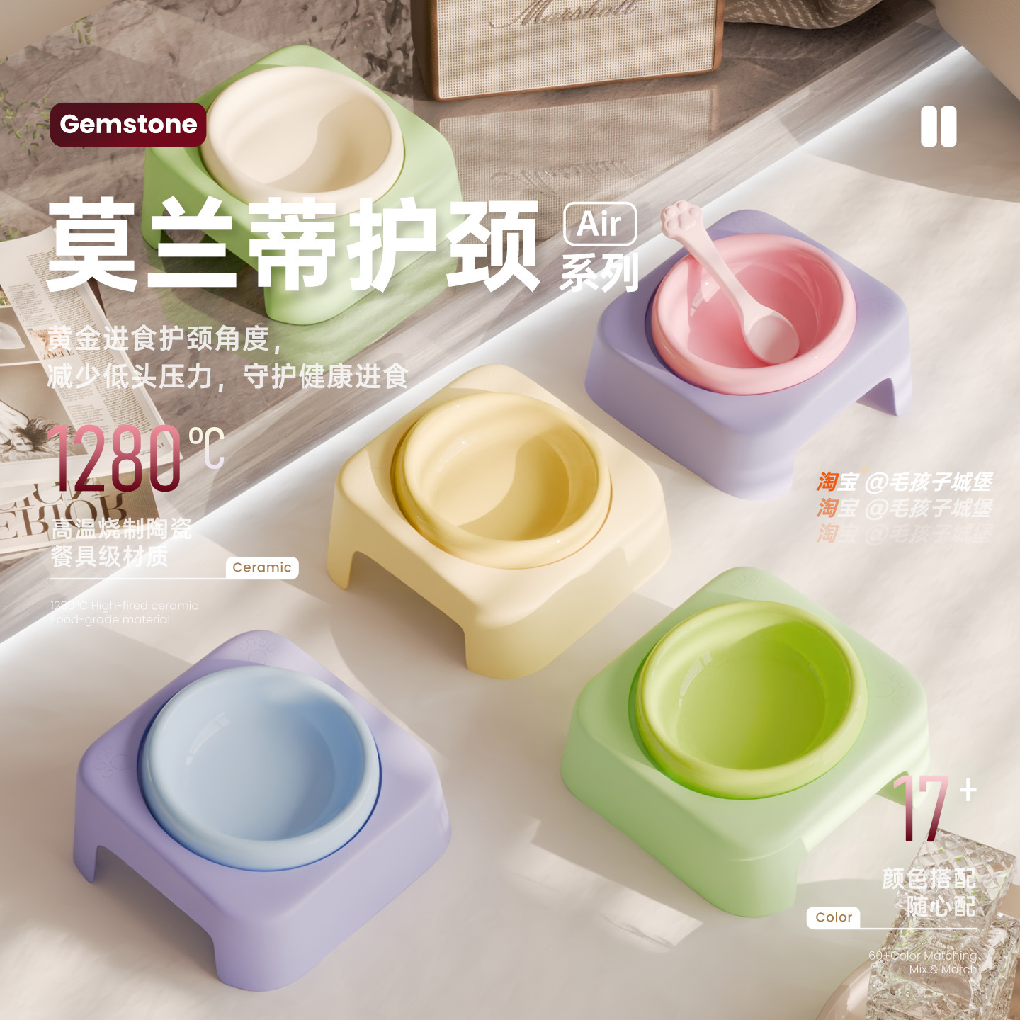 Gradient Cat Bowl Ceramic Cervical Spine Protection Cat Bowl Cat Food Bowl Water Bowl Cat Bowl Dog Bowl Slanted Mouth Pet Bowl Anti-Knock over