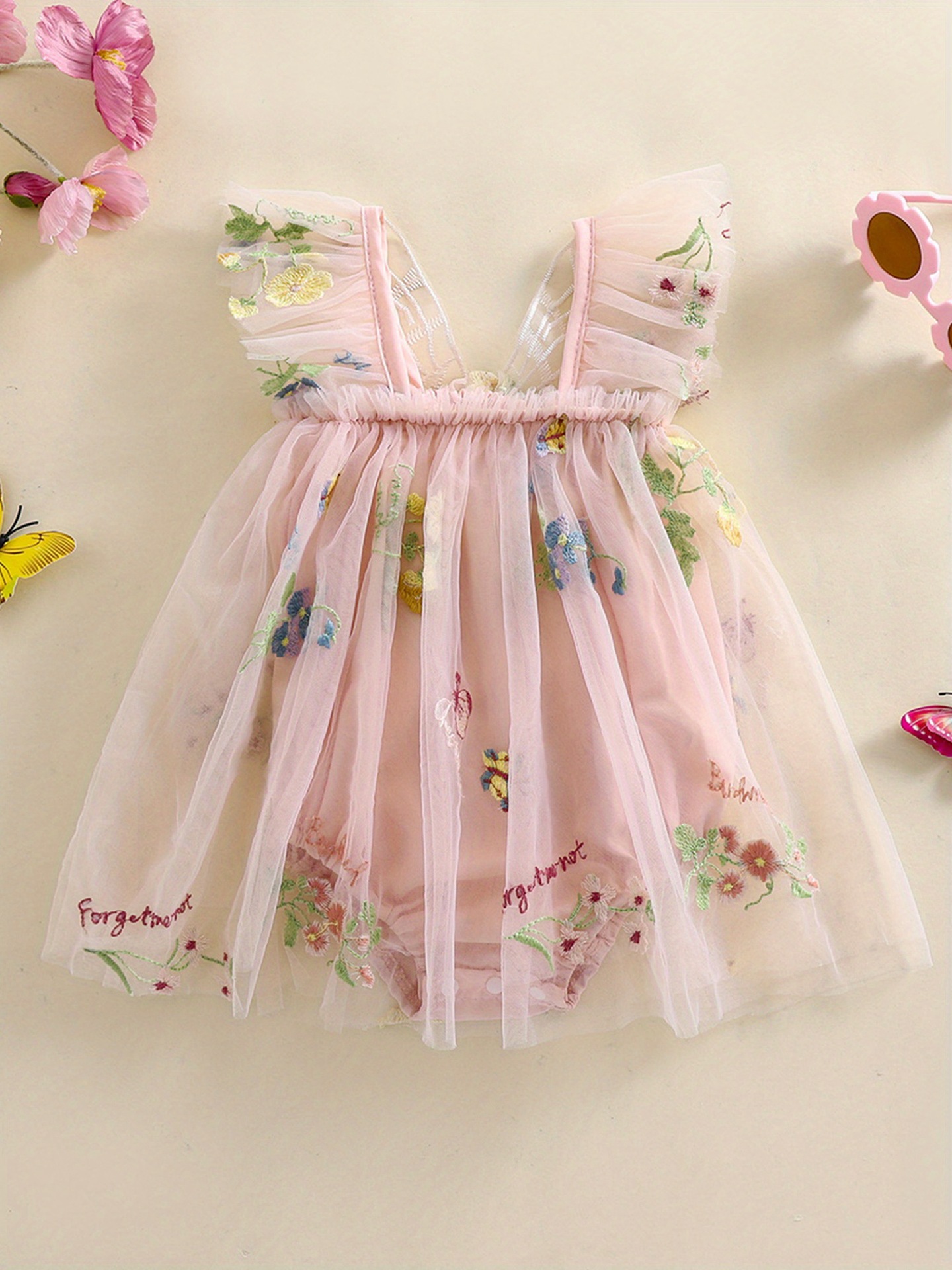 ⑤E8412026 Cross-Border New European and American Cute Mesh Baby Girl Butterfly Flower Dress Cross-Border Dropshipping