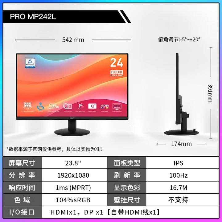 Msi Mp242L 23.8-Inch 1K100Hz Commercial Computer Office Lcd Monitor Screen Rheinland Certification