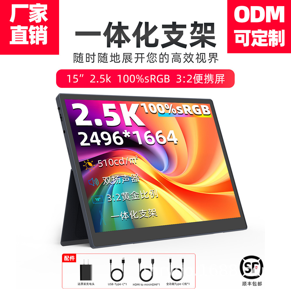 15-Inch 2.5K Portable Monitor for Mobile Phones, Tablets, and Laptops, External Expansion Screen, Secondary Screen for Office Use