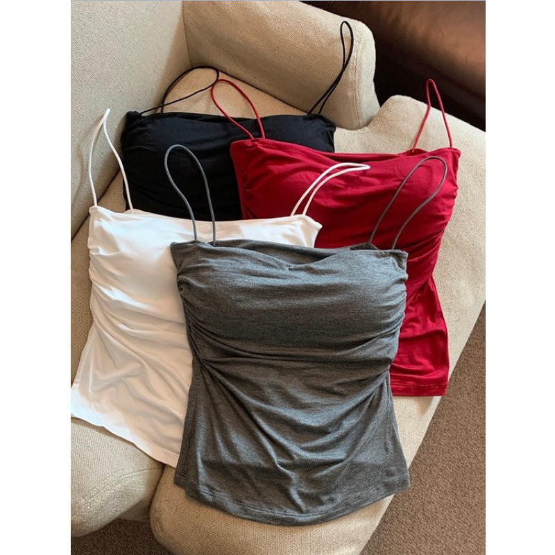 Spice Girls Pure Desire Pleated Camisole Women's Summer Thin Shoulder Strap Inner Wear Sweet and Hot Style Sleeveless Small Top Outer Wear Slimming