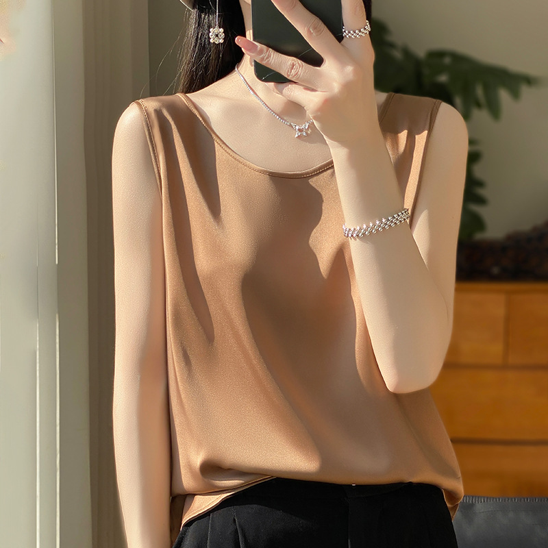 Summer round neck imitation silk camisole women's small suit inside take loose outside wear sleeveless shirt base shirt wholesale