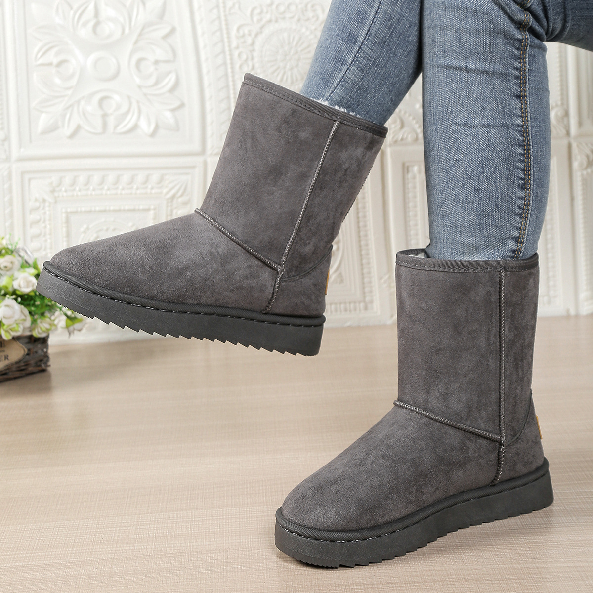 Winter New Sheep and Fur Integrated Ethnic Snow Boots Women's Taz Warm plus size One Pedal Low-top Half-tow Cross-border