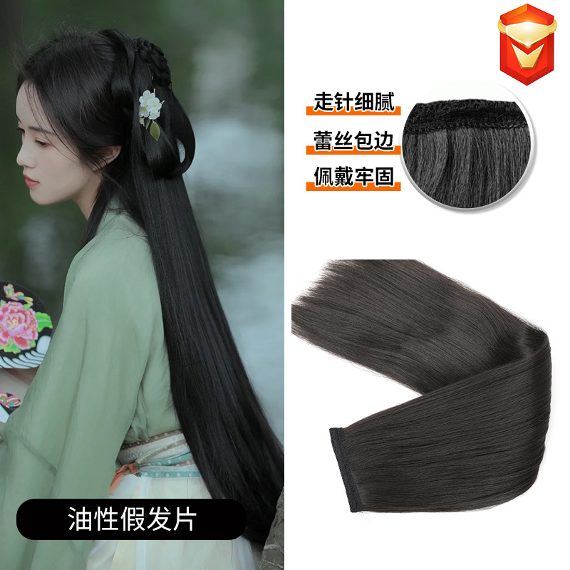 Oily Straight Hair Tablet Ancient Wig Tablet Additional Volume Fluffy Middle Zone Wig Tablet Hair Row Hanfu Natural Style Wig