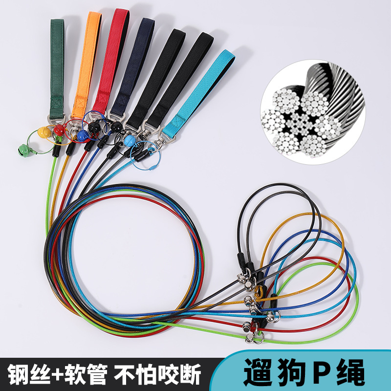 Cross-Border Steel Wire Dog Leash Pet Collar Integrated Dog Walking Leash for Large and Small Dogs P Rope Dog Leash P Rope Wholesale