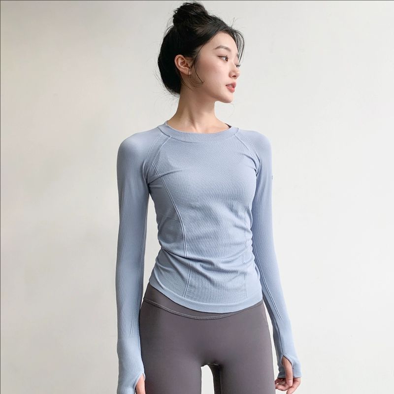 New Autumn and Winter Yoga Tops for Women, Round Neck, Tight-Fitting, Long-Sleeved, Quick-Drying, Running, Pilates Training, Fitness Clothes