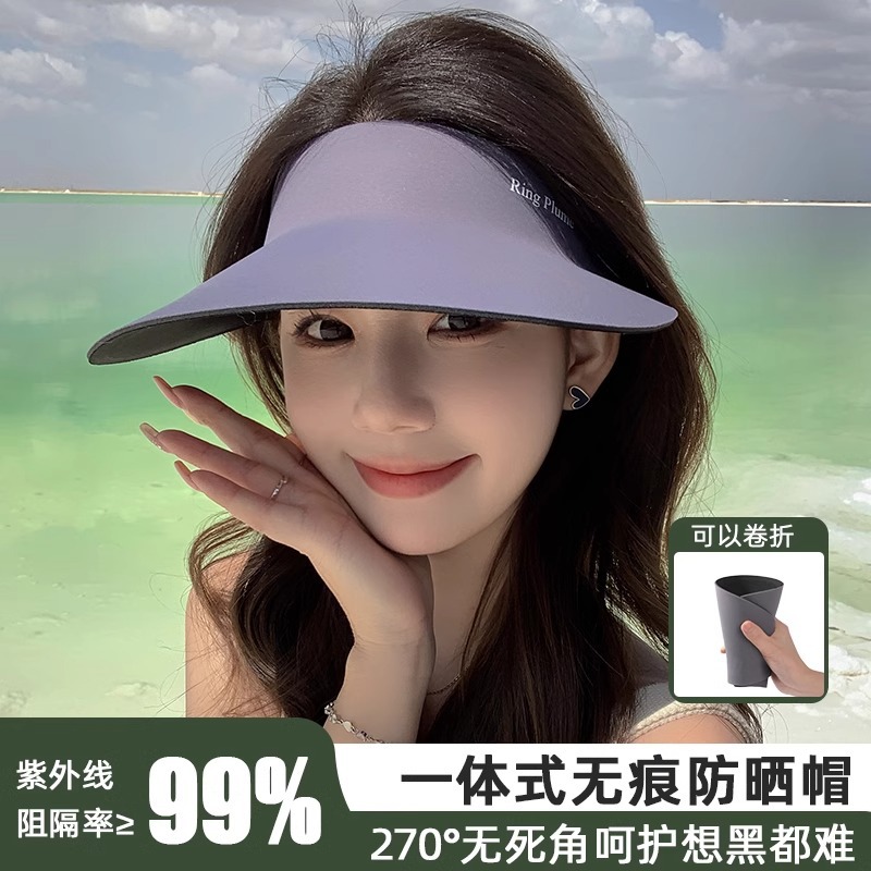 Traceless one-piece sunscreen cap children's sunshade anti-ultraviolet air top hat large brim summer outdoor cycling full face