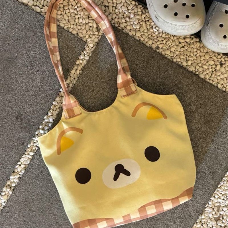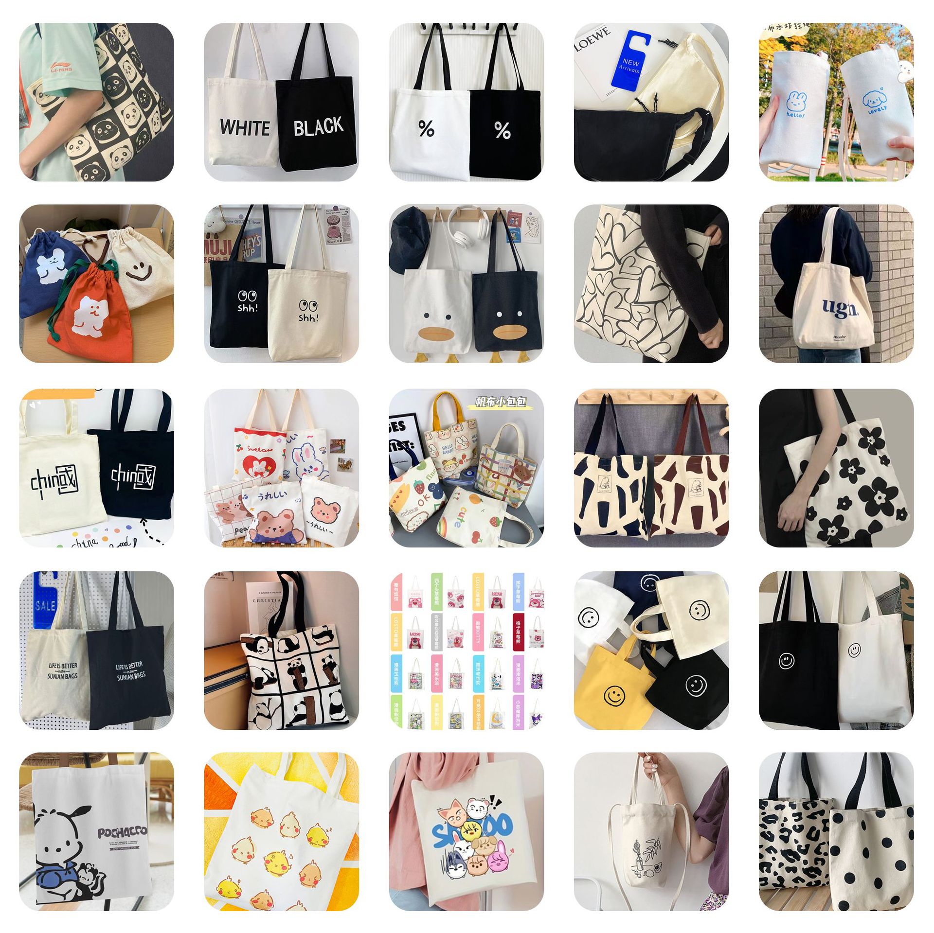 in stock Cartoon Canvas Bag Hand Carrying Single Shoulder Student Tutors' Literature All-match Four Seasons Portable Cloth Bag Commuter Bag for Women