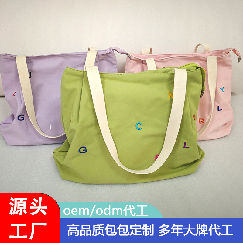 Ready-Made Canvas Bag, Korean Style, Casual New Style Bag, Large Capacity Women's Tote Bag, Letter Embroidery, Commuter Shoulder Bag