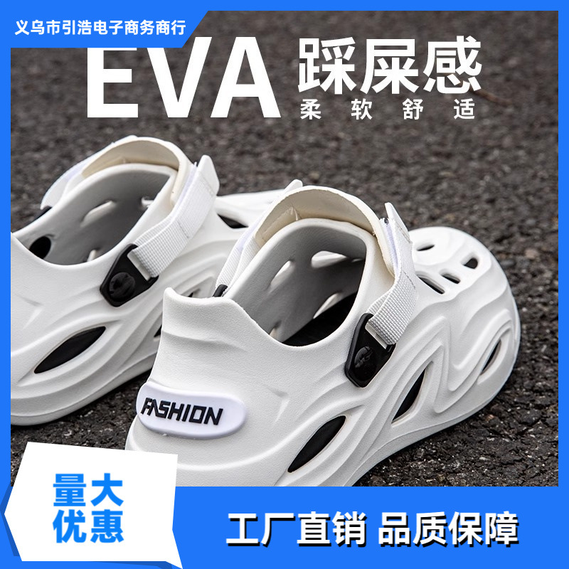 Summer New Hole Shoes Men's and Women's Garden Shoes Baotou Slipper EVA Beach Shoes Breathable Sandals Two-Wearing Sandals for Women