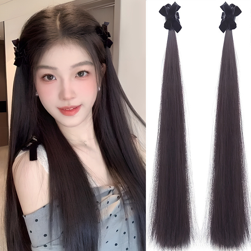 Xuchang Elf Ear Bow Clip Straight Hair Female Princess Braids Increase Hair Volume Long Braids Ponytail Internet Celebrity Wig