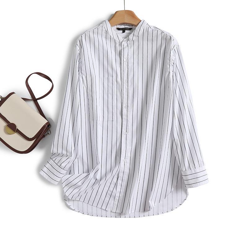 Bm&Md&Za New Autumn Women's Elegant Work Clothing Style Cotton Stripesd Long-Sleeved Shirt