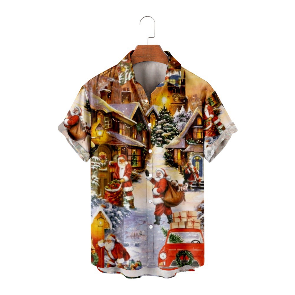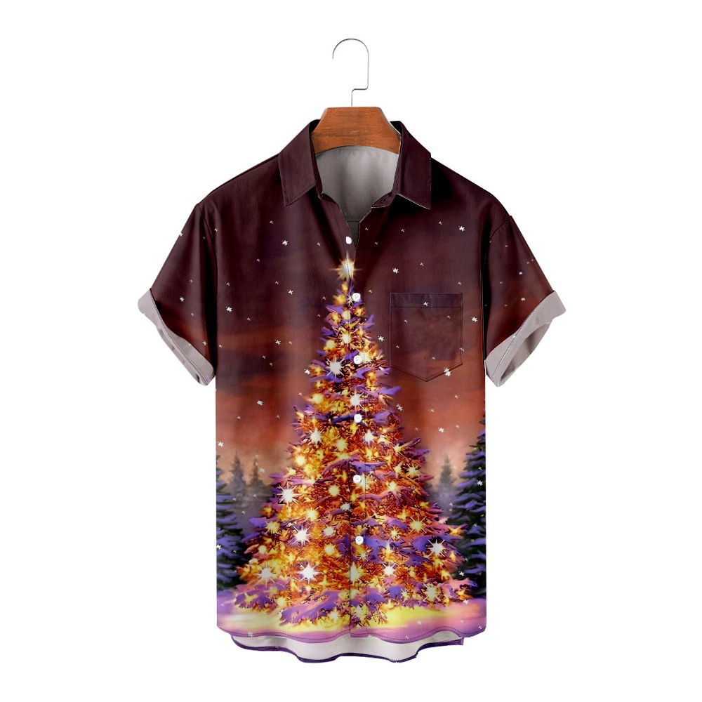 2022 Foreign Trade New Christmas Series Peripheral Personality Casual Printed Pocket Shirt for Men