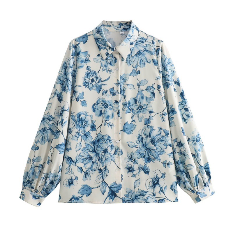 ZA cross-border 2023 autumn European and American cross-border women's clothing elegant light mature top flower printed long sleeve shirt w0