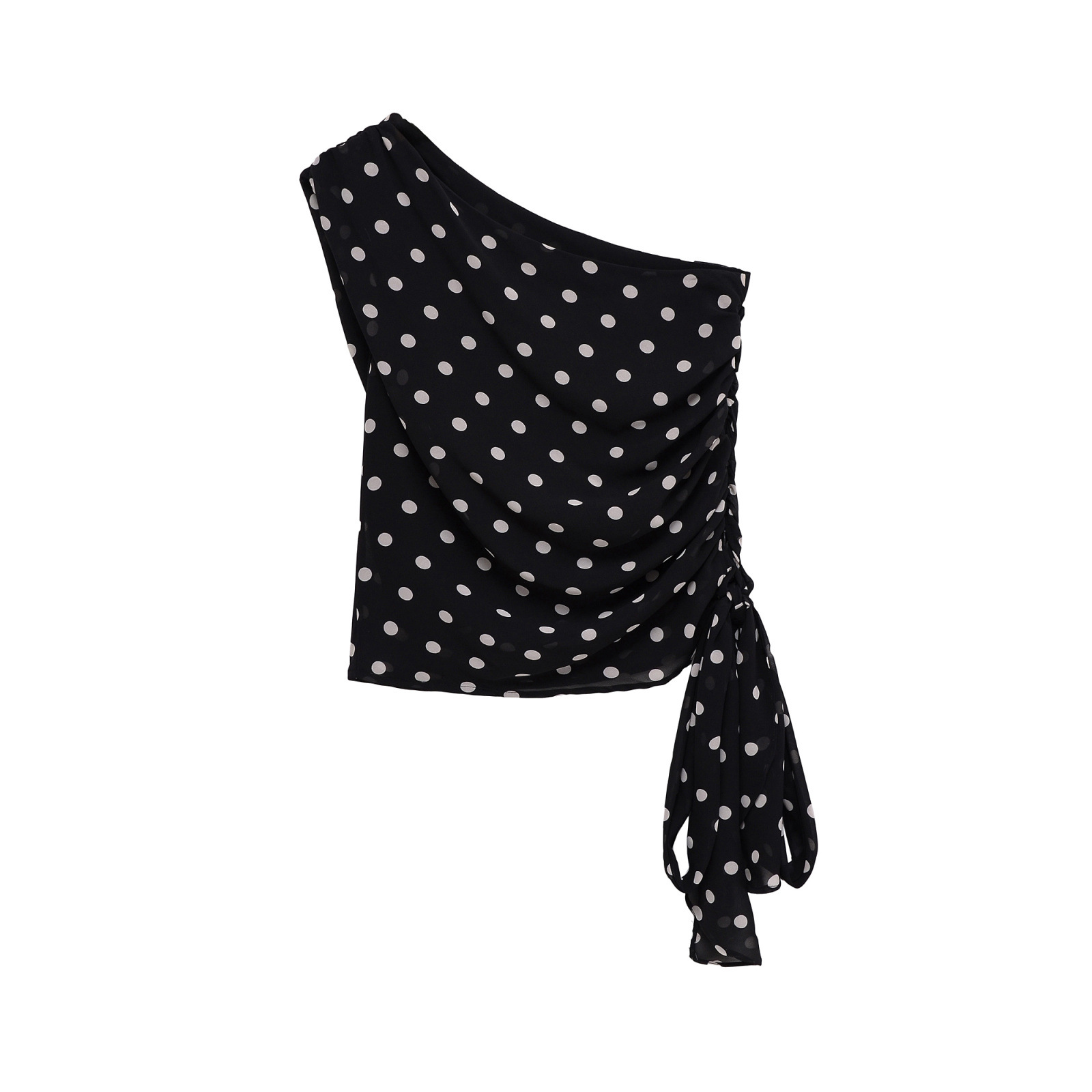 Pb&Za Women's 2025 Summer New Sweet and Spicy Style Dot Print Slanted Shoulder Pullover Chiffon Shirt 250102