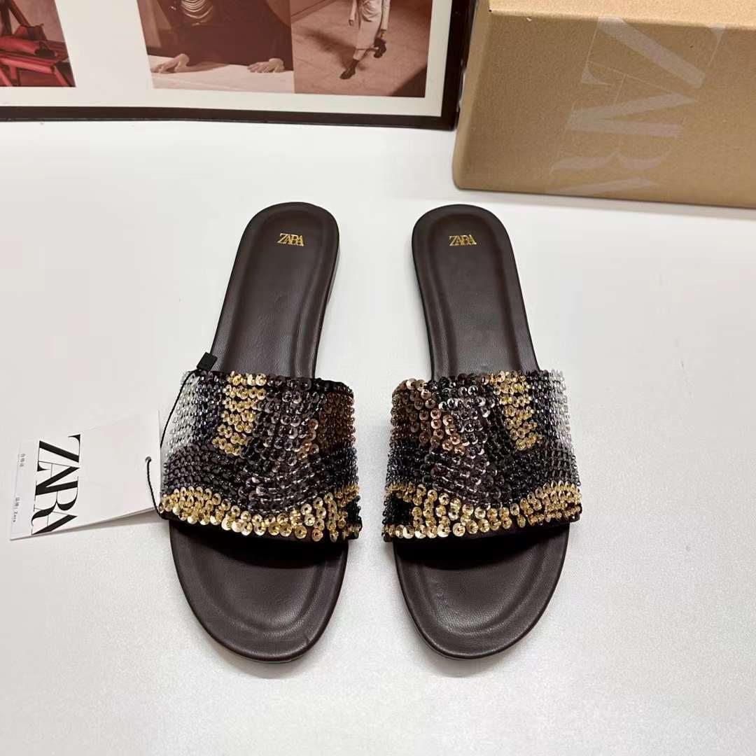 Za Summer Flat Slippers Soft Sole All-In-One Commuter Slippers Fashionable and Versatile European and American Large Size Cross-Border Women's Shoes Wholesale