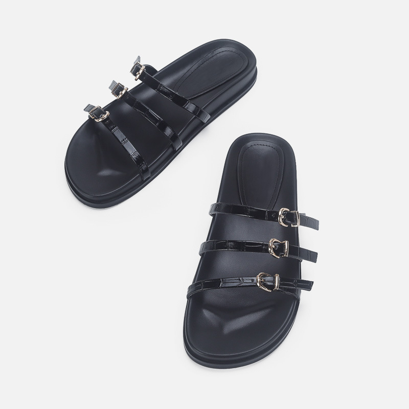 Za Summer Platform Sandals for Women Original Single Spot Wholesale Metal Belt Buckle Pure Color Slippers Slippers