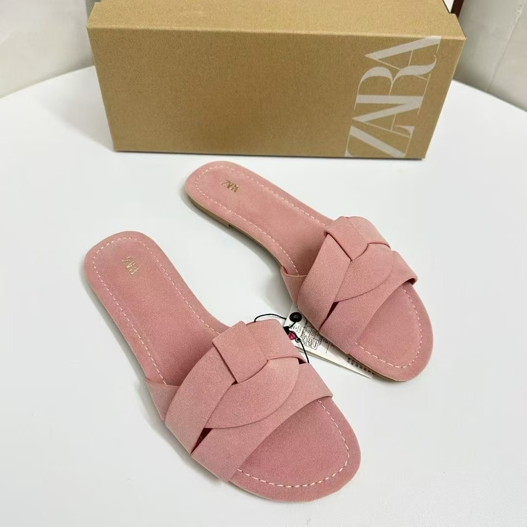 Za Cross-Border Large Size 2024 Summer New Slippers Foreign Trade Cross-Over Flat Simple Versatile Slippers Flat Heel